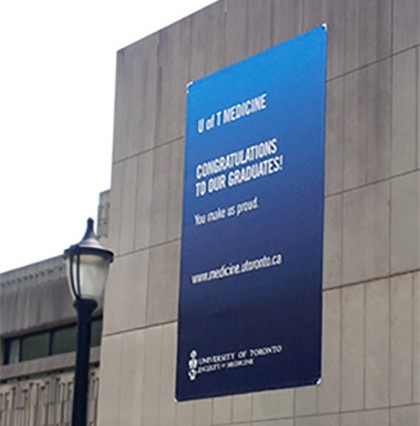 Building banners are a great way for a company to maximize its advertising impact while simultaneously branding its location. Whether it’s to promote an upcoming event or create an identity within the surrounding community, a well-designed building banner is an effective tool to maximize impact. Cityscape Displays has over 20 years of experience in custom building banners and hardware installation. You can see examples of our work all over the city of Toronto. Call or email us so we can help you achieve maximum impact and impressions for your building banner.